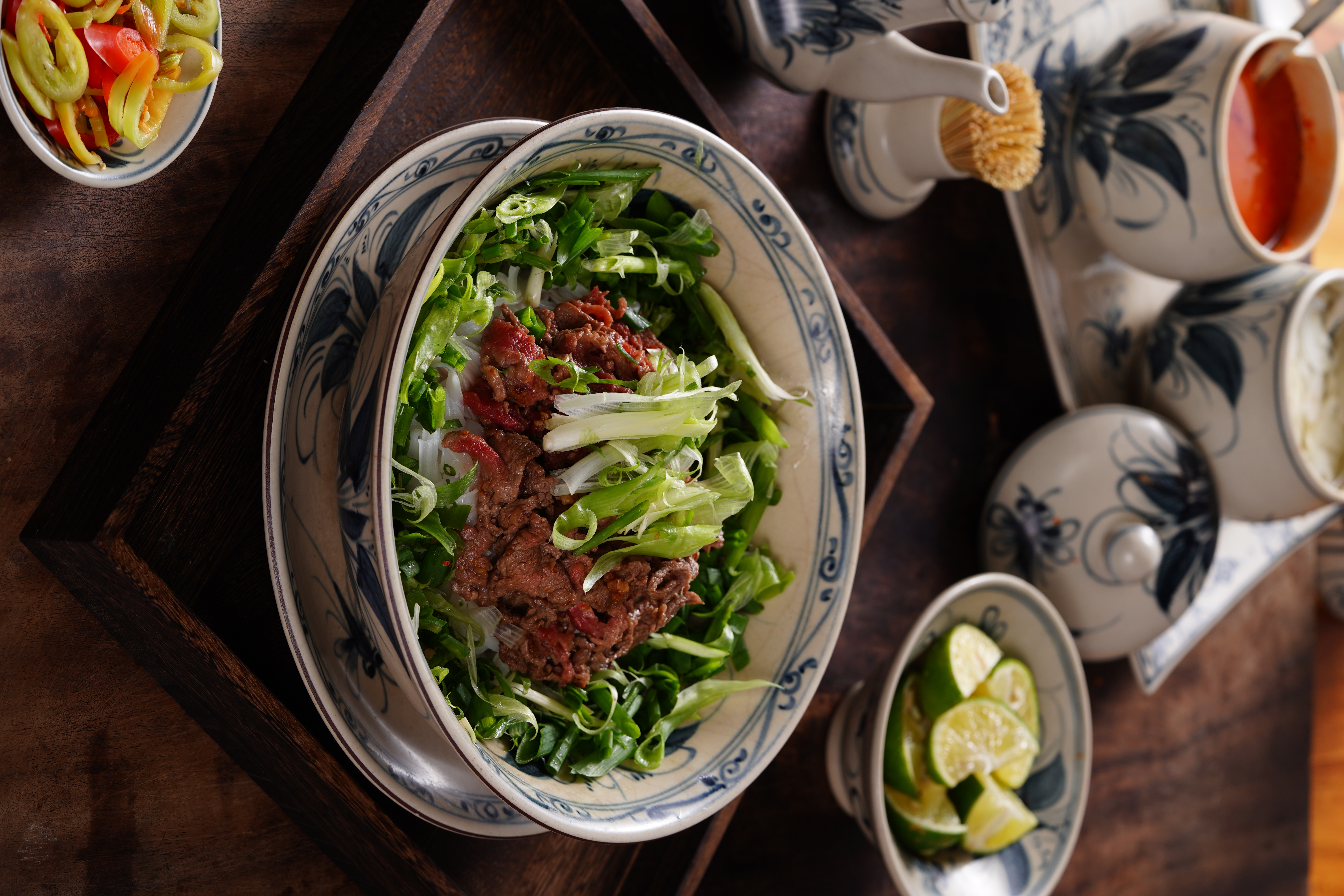 Một bát phở ngon sẽ càng hoàn hảo khi có những món kèm đi cùng. Quẩy nóng giòn, chấm đẫm trong nước dùng béo ngậy, mang lại cảm giác vừa quen vừa lạ. Vắt thêm chút chanh, vài lát ớt đỏ cay nồng hay vài tép tỏi ngâm chua dịu, mọi giác quan như được đánh thức.